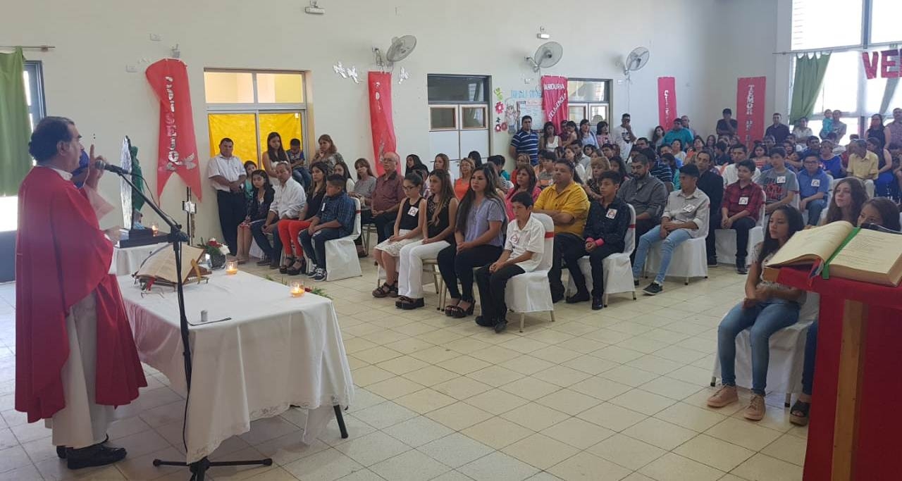 La Eucaristía fue presidida por el Padre Carlos Ibáñez, delegado por el Obispo Diocesano, Mons. Luis Urbanc, para confirmar en la fe a los chicos de esa comunidad.
