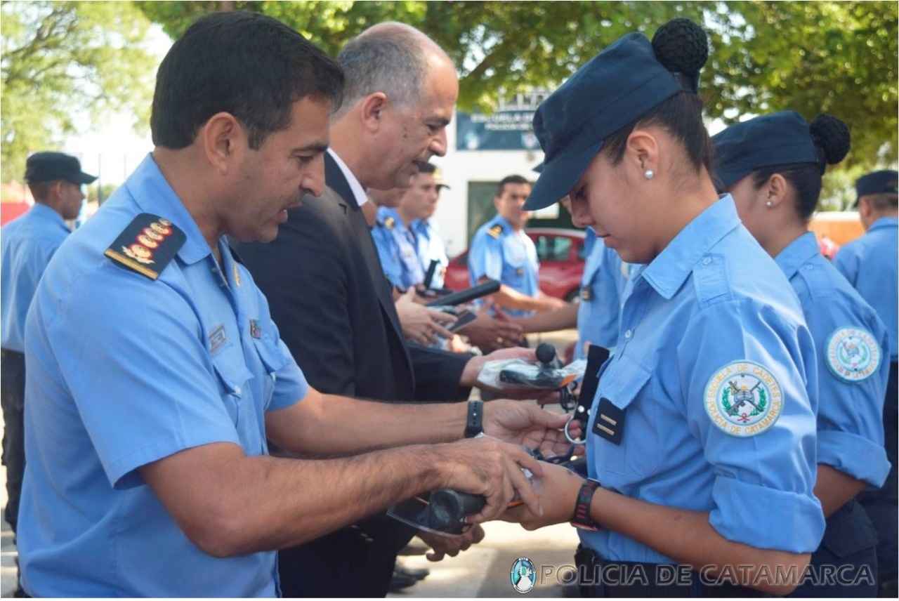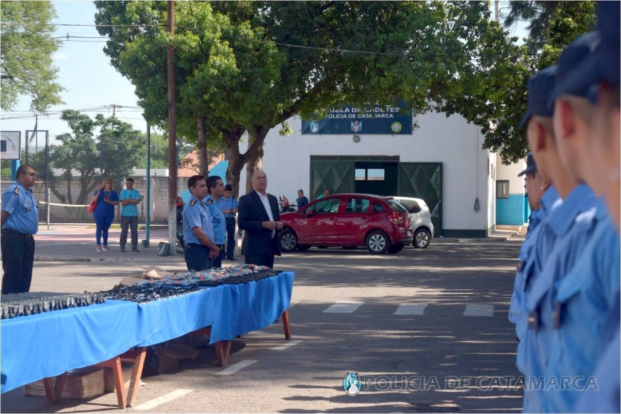 Autoridades de la Secretaría de Seguridad Democrática y de la Policía de la Provincia hicieron entrega de elementos a los jóvenes alumnos Cadetes que cursan el primero y el segundo año en esa Casa de Estudios Policiales.