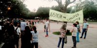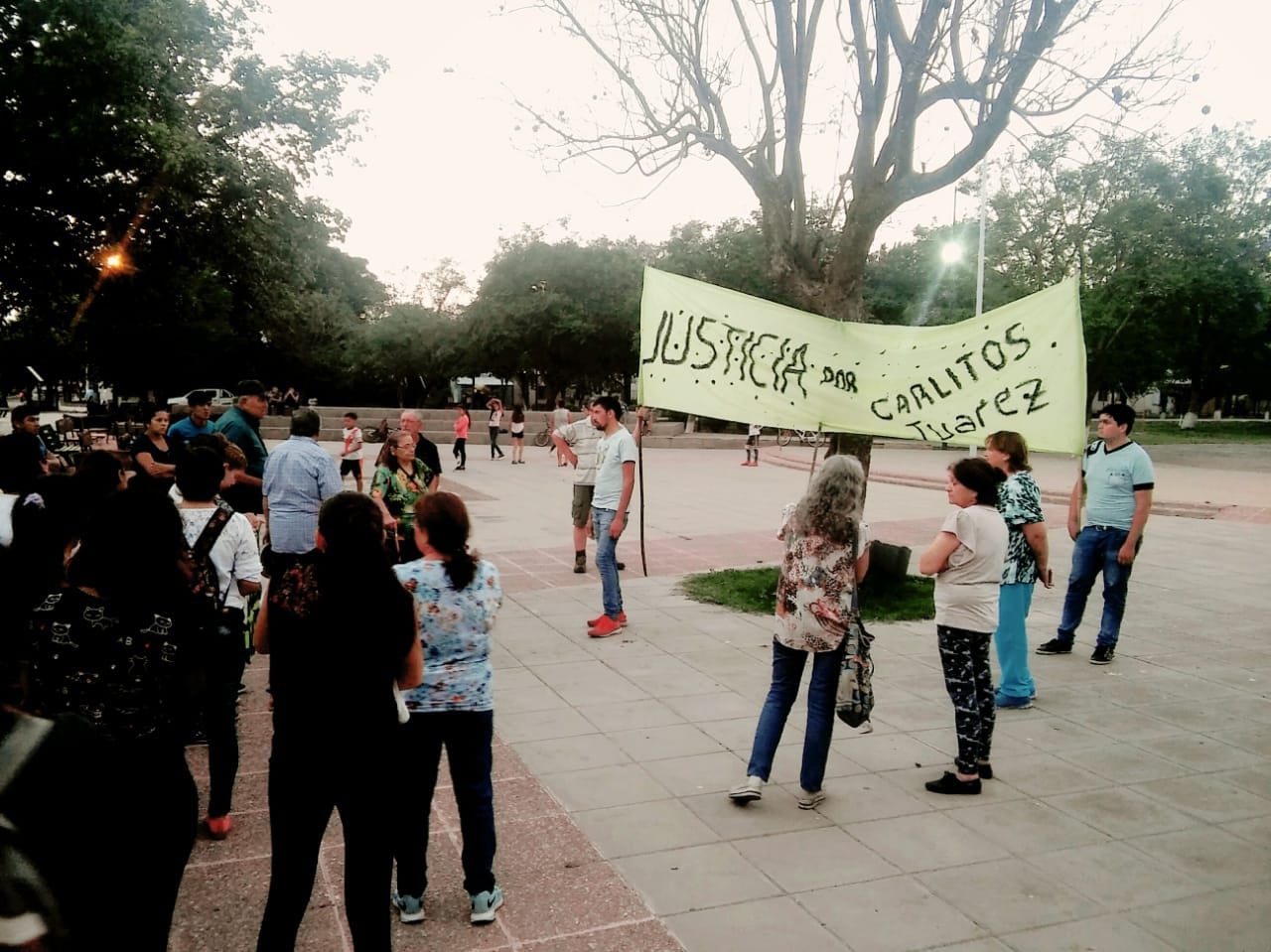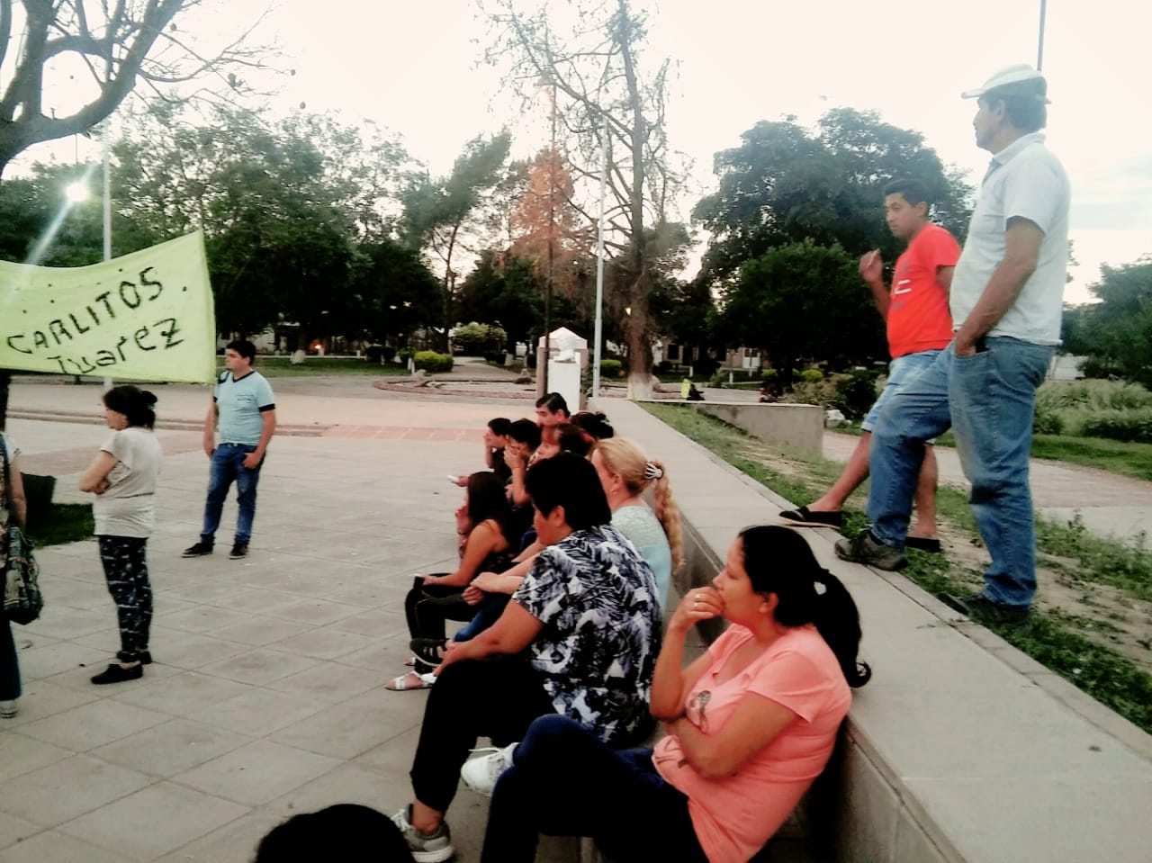 Después de concentrarse en la plaza, marcharon pidiendo justicia por don Carlos Juárez, el hombre a quien le amputaron una pierna, tras recibir una fuerte descarga eléctrica en Río Chico.