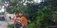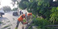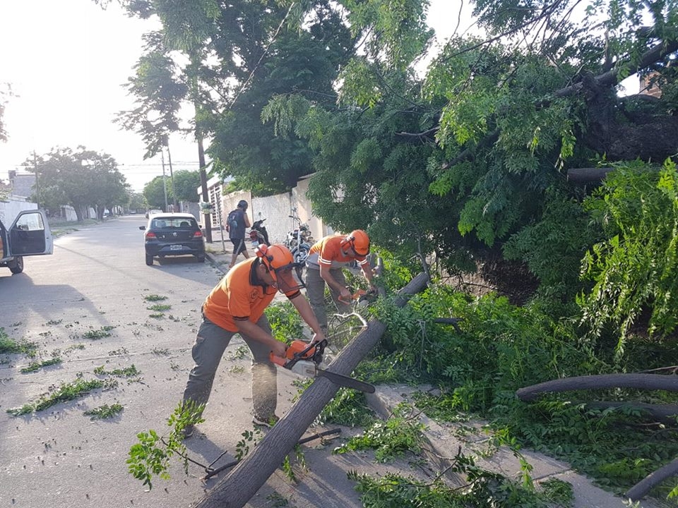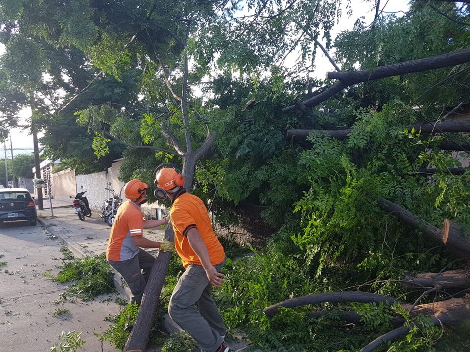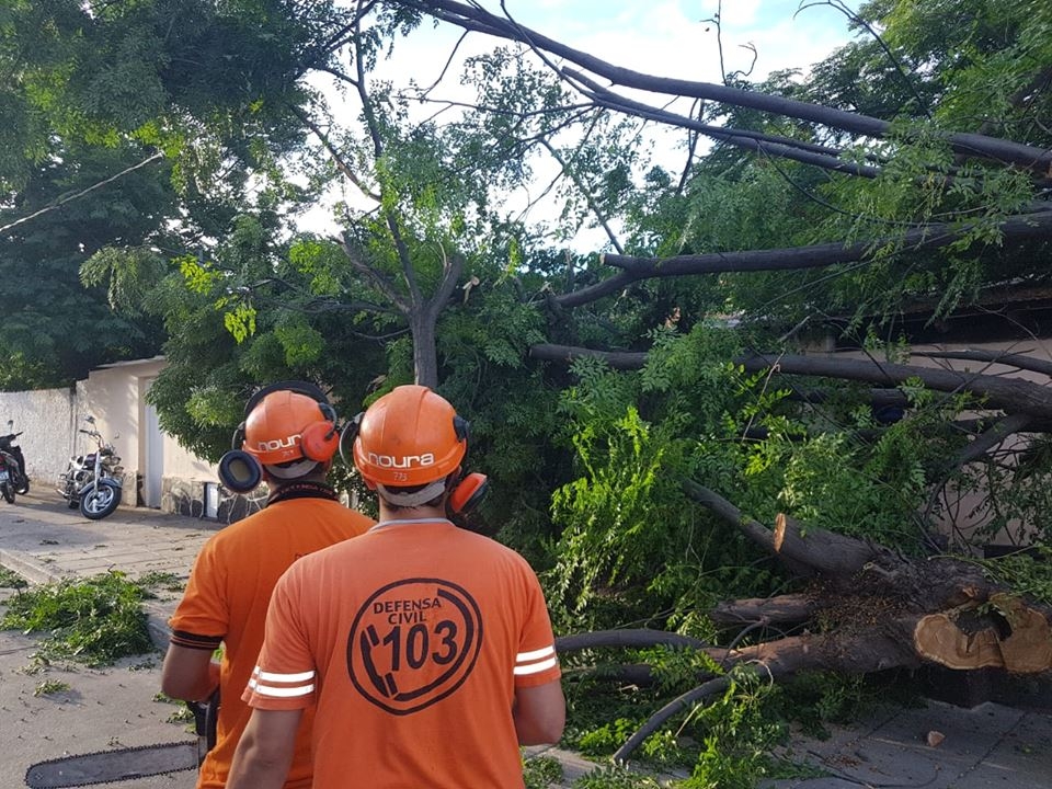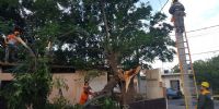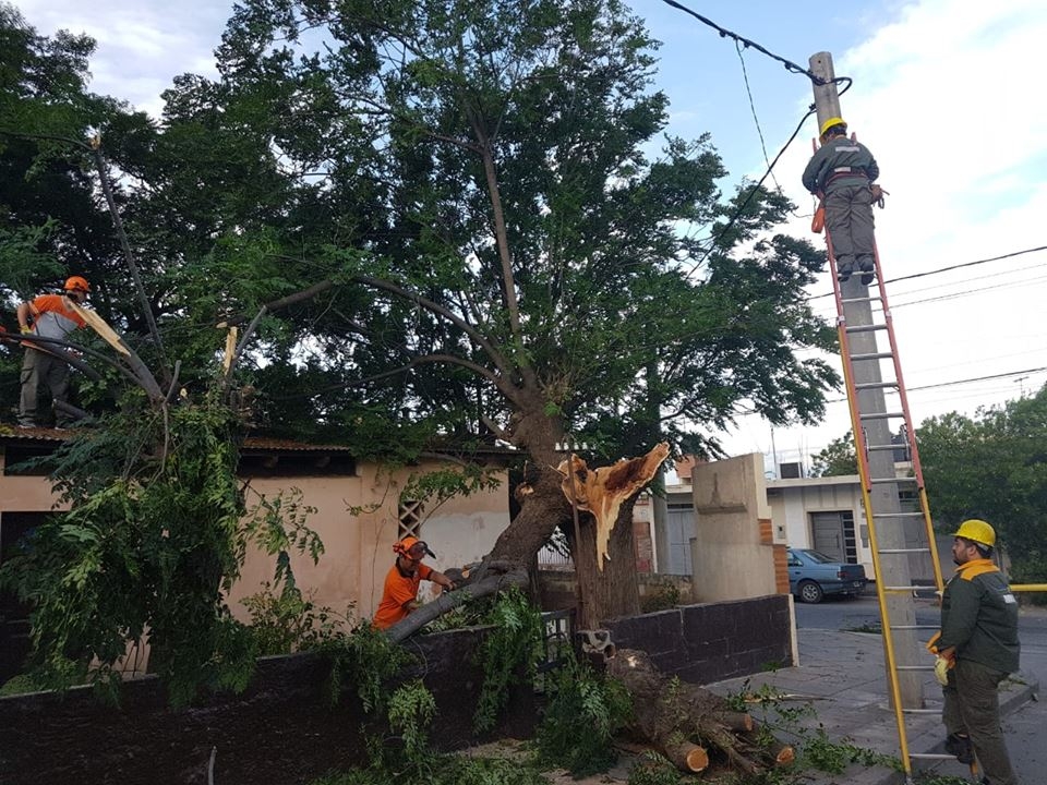 En el lugar, personal de Defensa Civil y operarios de la EC SAPEM, retiraron un árbol de grandes dimensiones de una vivienda, que se había caído hacia la vía pública y afectó el tendido eléctrico.