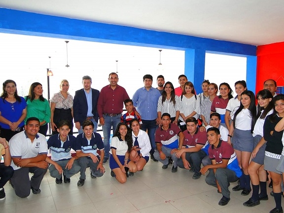 Directivos de los Establecimientos Educativos de nuestra Ciudad acompañados de los alumnos, la responsable de Relaciones con la Comunidad de la Empresa Arcor, Noelia Halmallan, fueron partícipes de este importante avance para los jóvenes.