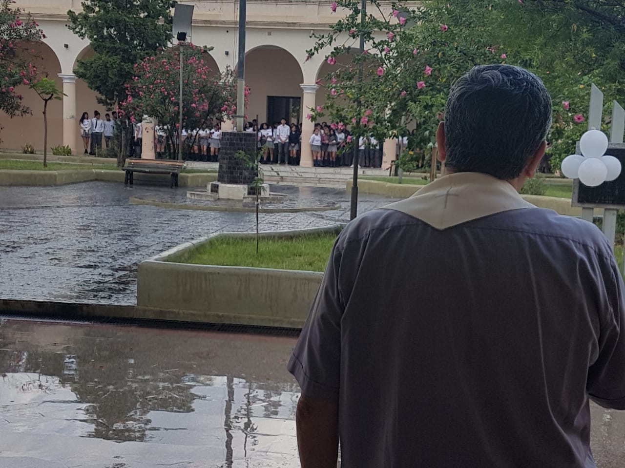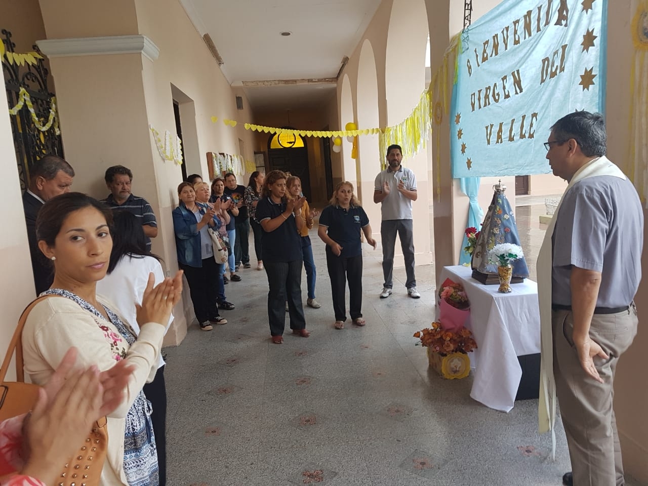 Bajo la llovizna caída en la ciudad, a primeras horas de la mañana, visitó el Colegio Fidel Mardoqueo Castro, donde fue recibida por directivos, docentes, no docentes y todo el alumnado. El Rector del Santuario Mariano, Pbro. José Antonio Díaz, explicó el sentido de la presencia de la Virgen en la institución educativa y bendijo a todos los presentes.