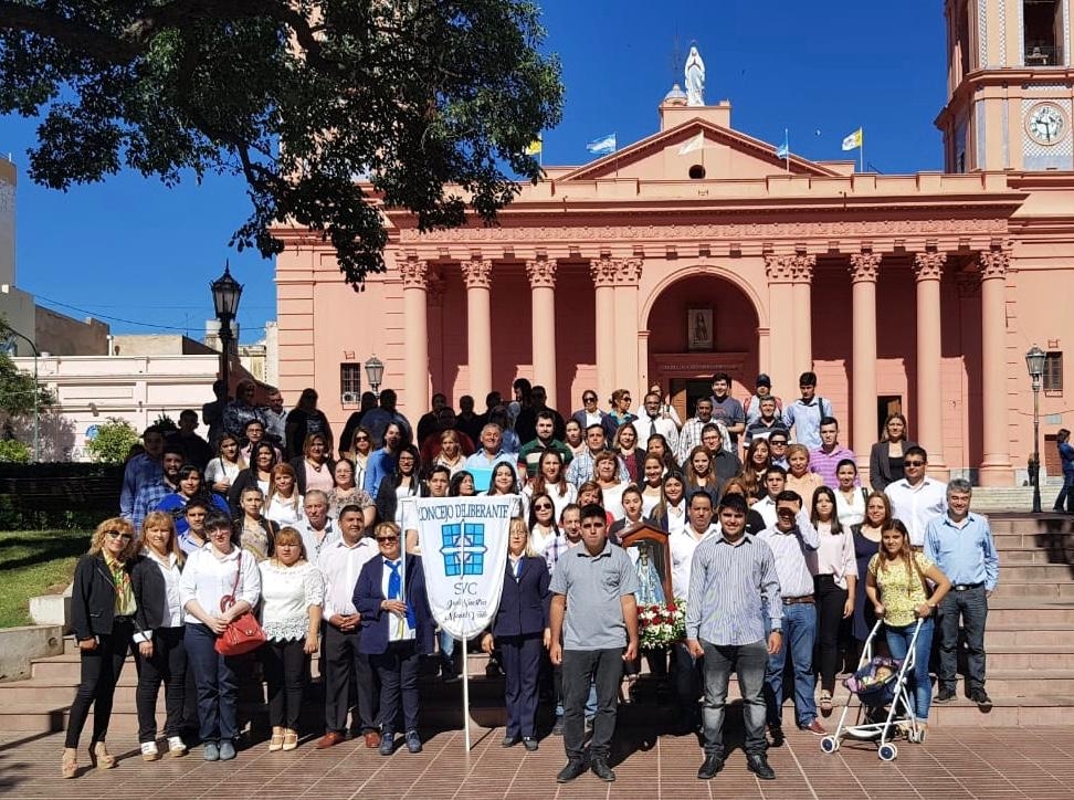 Luego de la oración de los fieles, los representantes del ámbito legislativo acercaron hasta el altar elementos para la atención de los hermanos peregrinos y los dones del pan y del vino, que luego fueron consagrados.