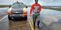 ZONA NORTE LOS ALTOS. No es de río... es de agua caída anoche y los campos dejan correr hacia la ruta, y los vecinos son los que pagan las grandes consecuencias.¡¡