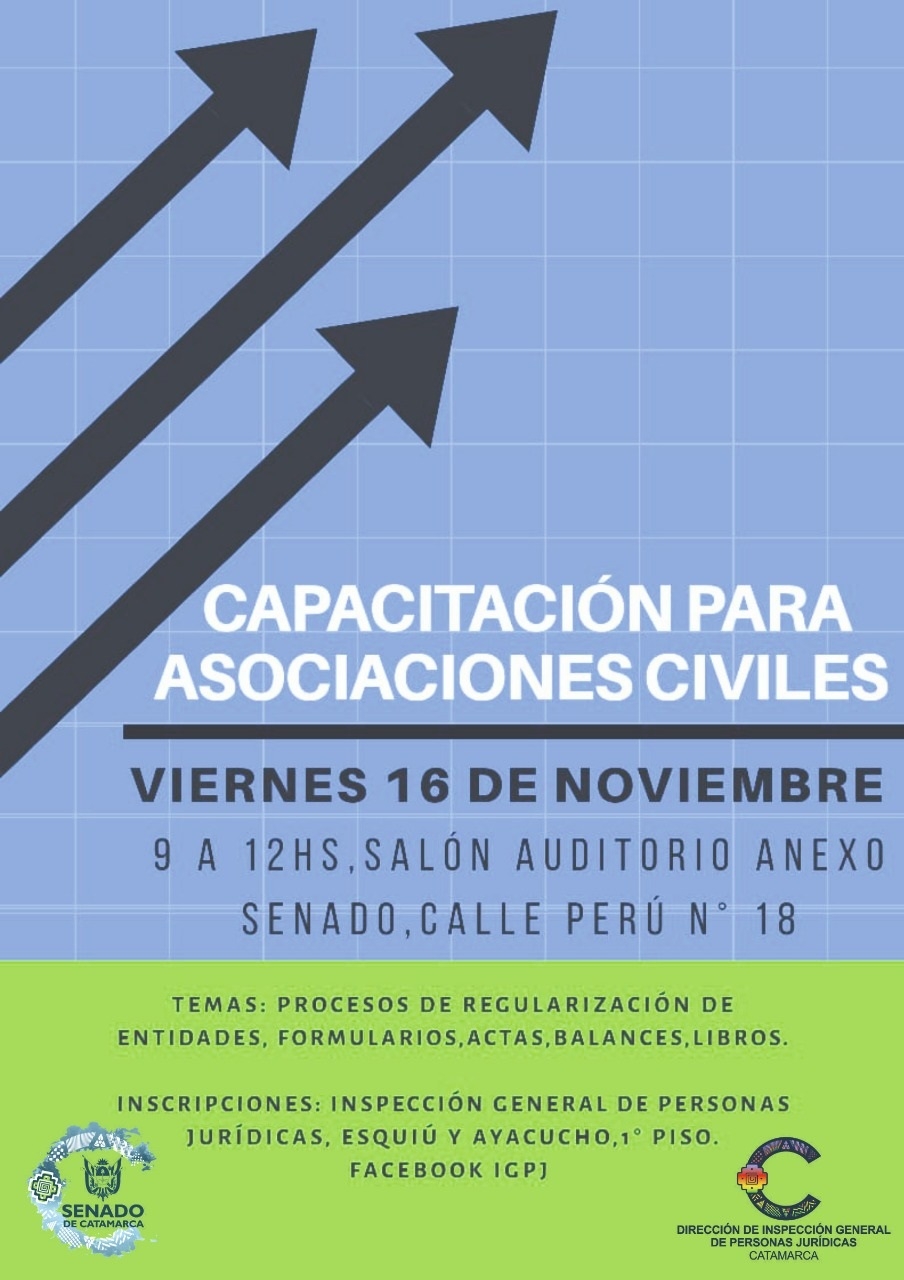 El próximo viernes 16 de noviembre, de 9 a 12, en el salón auditorio del Anexo de calle Perú Nº 18, se dictará una capacitación para Asociaciones civiles, para abordar el proceso y ventajas de su regularización.