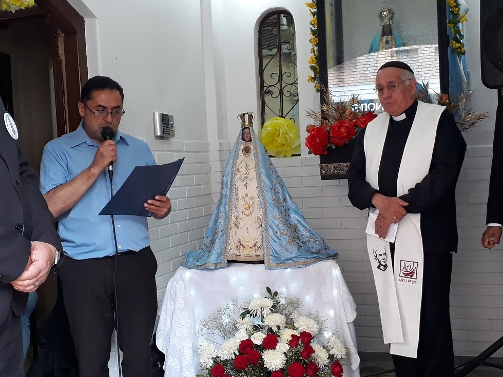 La bienvenida estuvo a cargo del CPN Víctor Villarroel, quien luego de agradecer la presencia de todos los que se dieron cita para recibir a tan Ilustre Visitante, manifestó que “una vez más Nuestra Virgen del Valle visita nuestra casa, para que podamos encontrarnos con Ella. Durante toda la jornada la acompañaremos con nuestro regocijo, con nuestras oraciones y agradecimientos; pediremos por el bienestar de nuestras familias y el nuestro propio, que bendiga nuestro trabajo y esta casa que nos alberga a todos”.