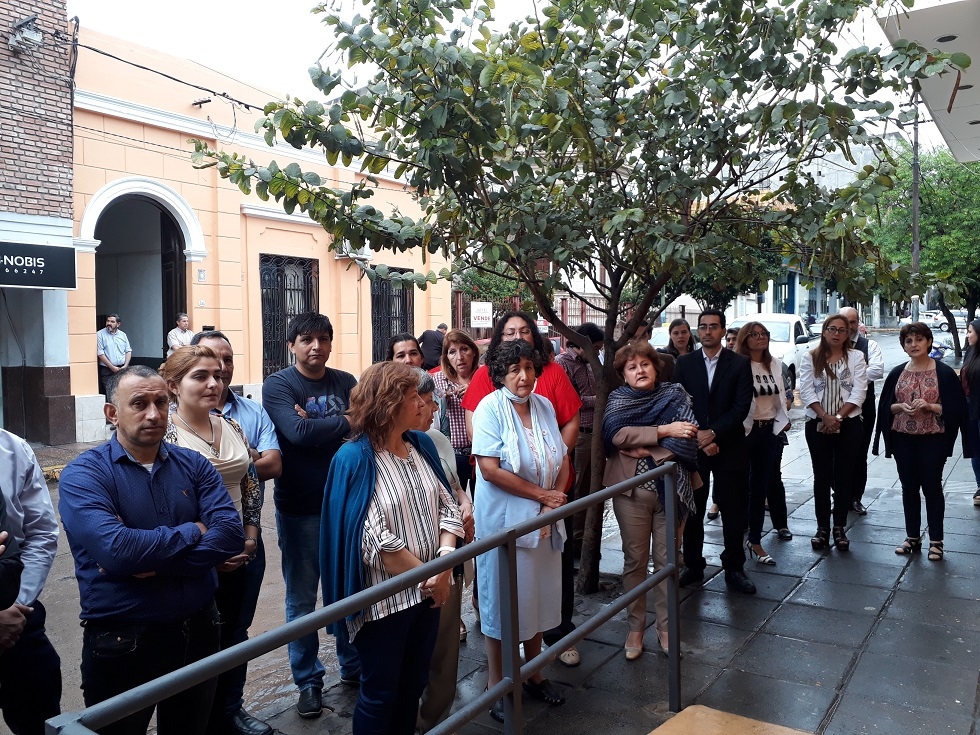 Durante el breve acto desarrollado en el hall del edificio, se rezó la Oración por los 400 años del hallazgo de la Madre del Valle en la Gruta de Choya, en este año dedicado la Piedad Popular, que vive la Iglesia local como preparación para este gran acontecimiento en 2020.