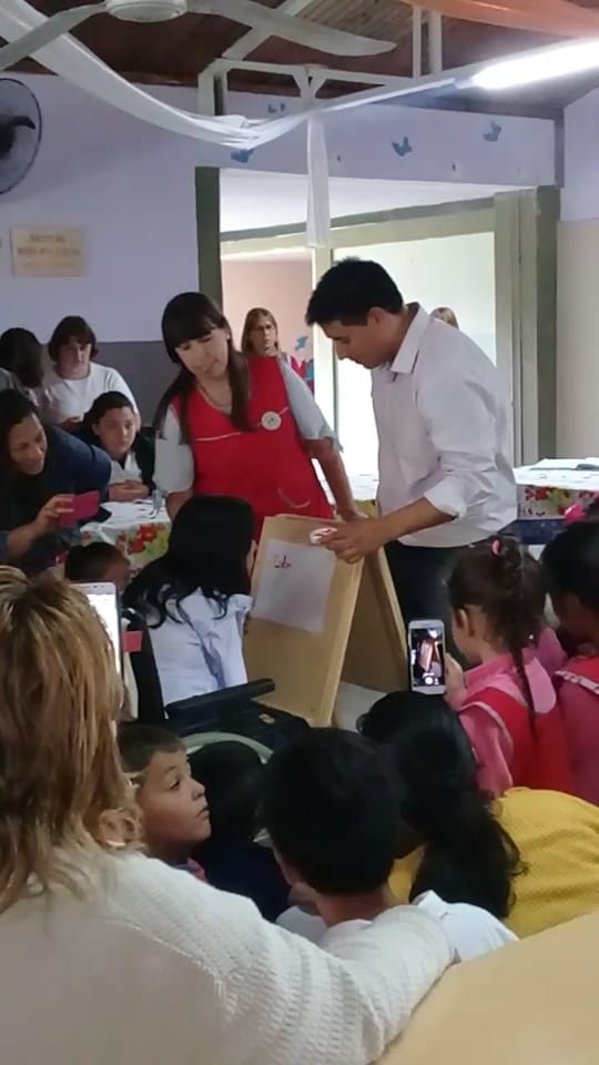 El proyecto ganador estaba referido al arte, por lo cual invitaron a la reconocida artista con el fin de compartir un grato momento con los niños del jardín y de la primaria.