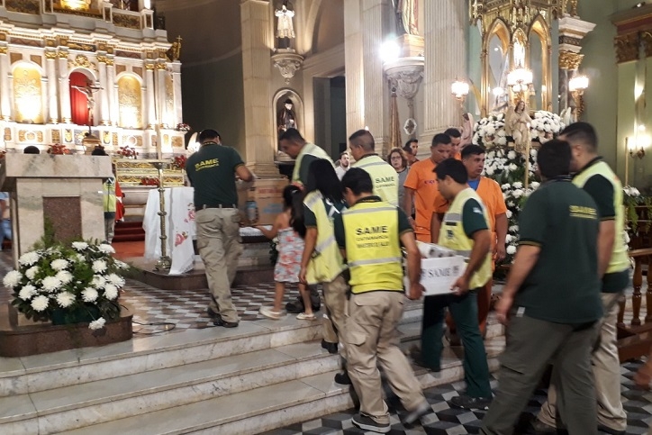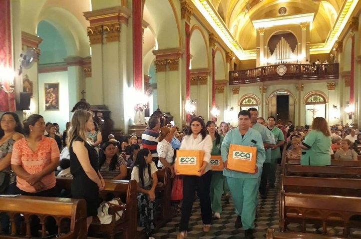 La oración de los fieles, en la que se pidió especialmente por los enfermos, dio paso a las ofrendas que los alumbrantes acercaron al altar, consistentes en alimentos no perecederos, agua mineral, elementos de limpieza, que serán utilizados para la atención de los hermanos peregrinos.
