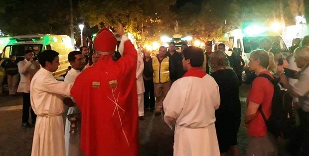 Al finalizar la celebración eucarística, Mons. Urbanc se dirigió hasta el Paseo de la Fe, donde bendijo ambulancias de empresas de emergencia médica privadas y del SAME.