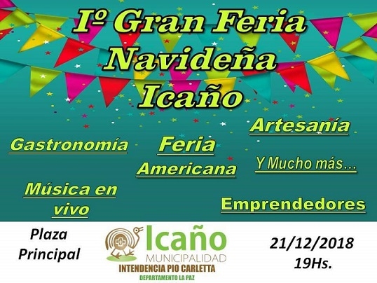 Recreo (C) - Formá parte de la 1º Gran Feria Navideña que se realiza en Icaño; podés exponer tus productos en forma gratuita.