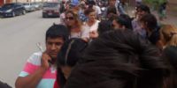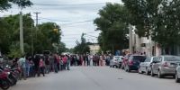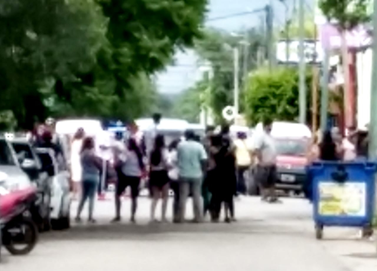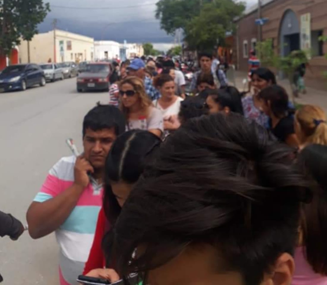 Hartos, cansados, personas que hacían cola frente al Banco Nación, sucursal Recreo, tomaron la determinación de cortar la Avenida Presidente Perón y también Sarmiento.