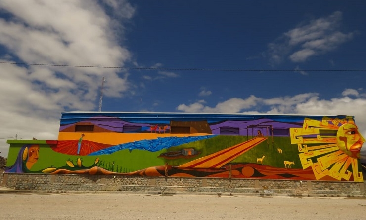 Se trata de una obra que demando más de dos meses de trabajo realizado por Victoria Tupone una profesora de Artes Visuales radicada en Laguna Blanca y acompañada por el municipio que conduce el intendente Ramón Villagra, el delegado Julio Flóres y la colaboración de los mayores y jóvenes de la comunidad de Barranca Larga distante a 98 km del la cabecera departamental y paso obligado a la Puna Catamarqueña.