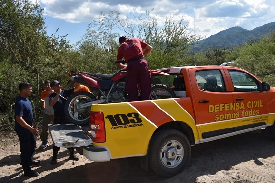 Para realizar la búsqueda, Defensa Civil aportó una motocicleta con el propósito de recorrer los sectores de dificil acceso, donde podría estar el joven.