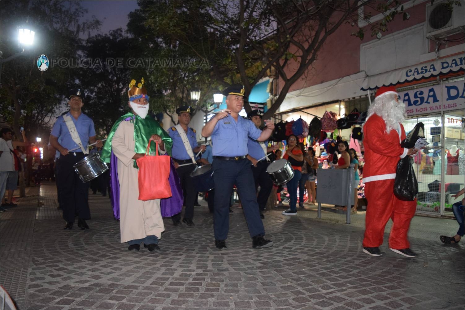 Con el espíritu navideño, los efectivos partieron desde la plaza 25 de Agosto y recorrieron la peatonal Rivadavia entonando con alegría diferentes villancicos, mientras Papá Noel y los Reyes Magos entregaban golosinas a los más pequeños, para luego finalizar en la glorieta de la Plaza 25 de Mayo, donde concluyeron con una retreta para los presentes.