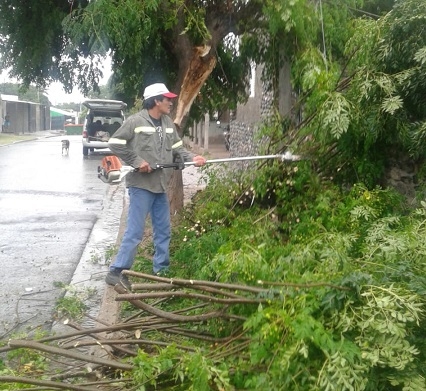 Los principales requerimientos que se debieron atender con maquinaria y herramientas pesadas para despejar calzadas y veredas fueron en calle Esquiú, donde cayó una pared por acción de las fuertes ráfagas de viento, y avenida Cobacho, con árboles quebrados ocupando parte de la calzada.