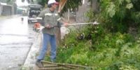 Varias cuadrillas de trabajadores de las secretarías de Servicios Públicos, Ambiente y Gobierno salieron a la calle para revisar escenarios de caída de paredes de sitios baldíos y árboles quebrados por el viento.