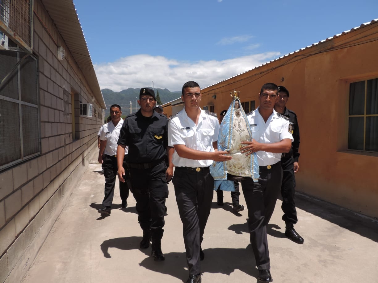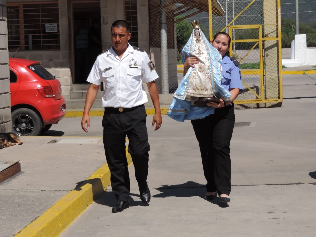 Partió desde el Santuario Mariano en brazos de los oficiales Velia Carabajal y Luis Agüero, siendo acompañada por una caravana vehicular. En su itinerario, antes de arribar a las instalaciones ubicadas en Miraflores, departamento Capayán, pasó por la unidad de mujeres.
