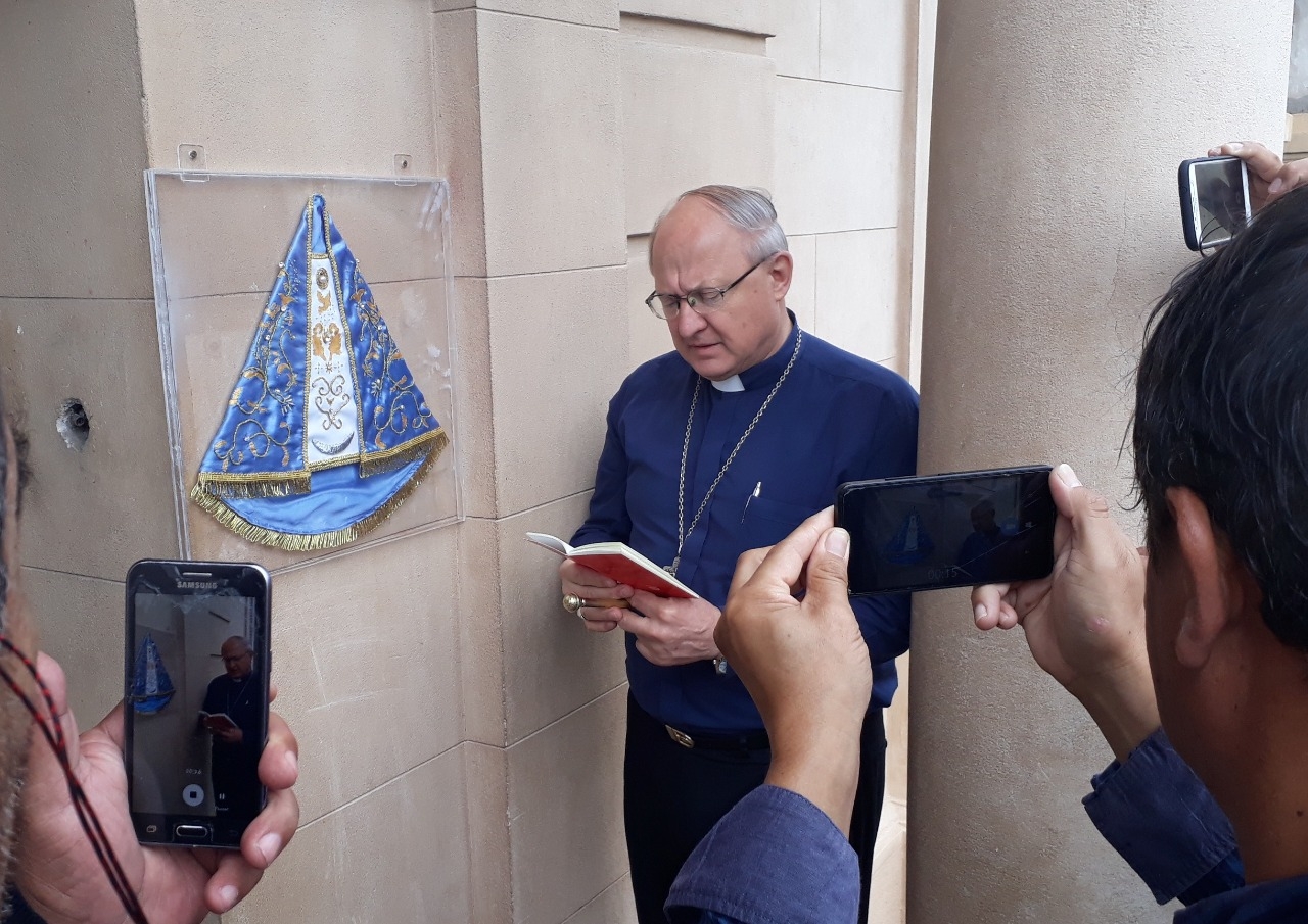 El breve y sencillo acto estuvo a cargo del Obispo Diocesano, Mons. Luis Urbanc, quien pidió que “todos aquellos que lo van a contemplar sean dóciles al Espíritu Santo y sigan el ejemplo de la Santísima Virgen María como discípula y misionera”.