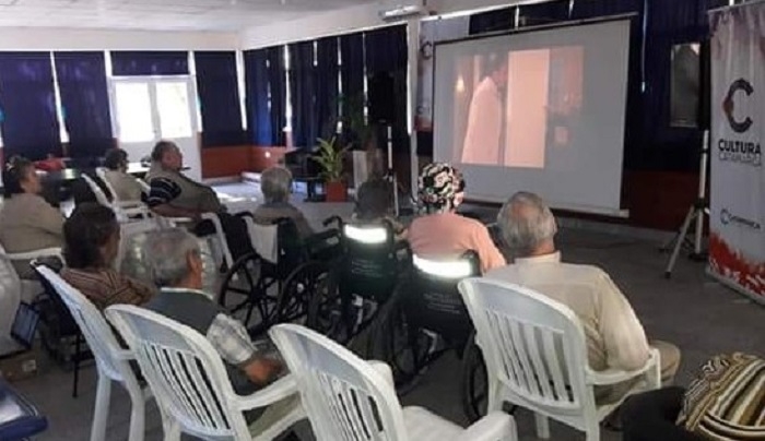 En la mañana de hoy, los abuelos del Hogar de Ancianos “Fray Mamerto Esquiú” fueron visitados por el equipo del Cine Móvil de Cultura que proyectó para ellos la conmovedora y exitosa película “Elsa y Fred”, protagonizada por la inolvidable actriz China Zorrilla, y el actor español Manuel Alexandre.