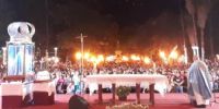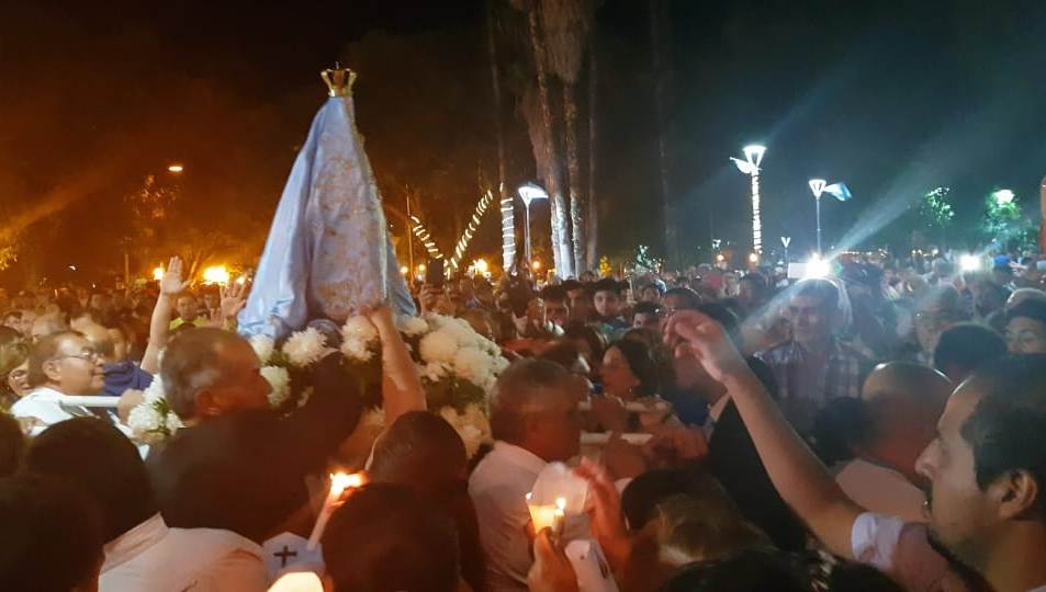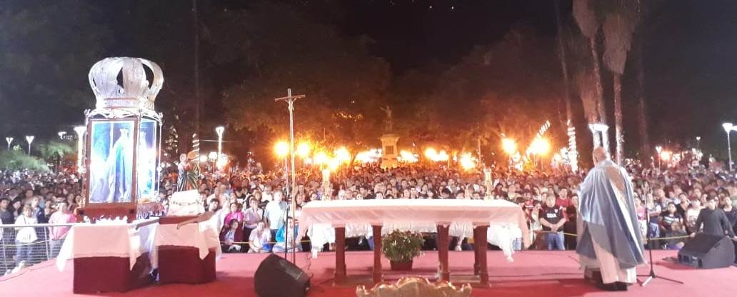 Luego de la celebración eucarística se realizó la procesión de antorchas con la Imagen de la Virgen del Valle, que partió desde el Paseo de la Fe y se desplazó alrededor de la plaza 25 de Mayo, elevando plegarias y cantando como expresión de amor y gratitud a la Virgen Morenita. Al arribar frente al Santuario Mariano se impartió la bendición a los participantes.