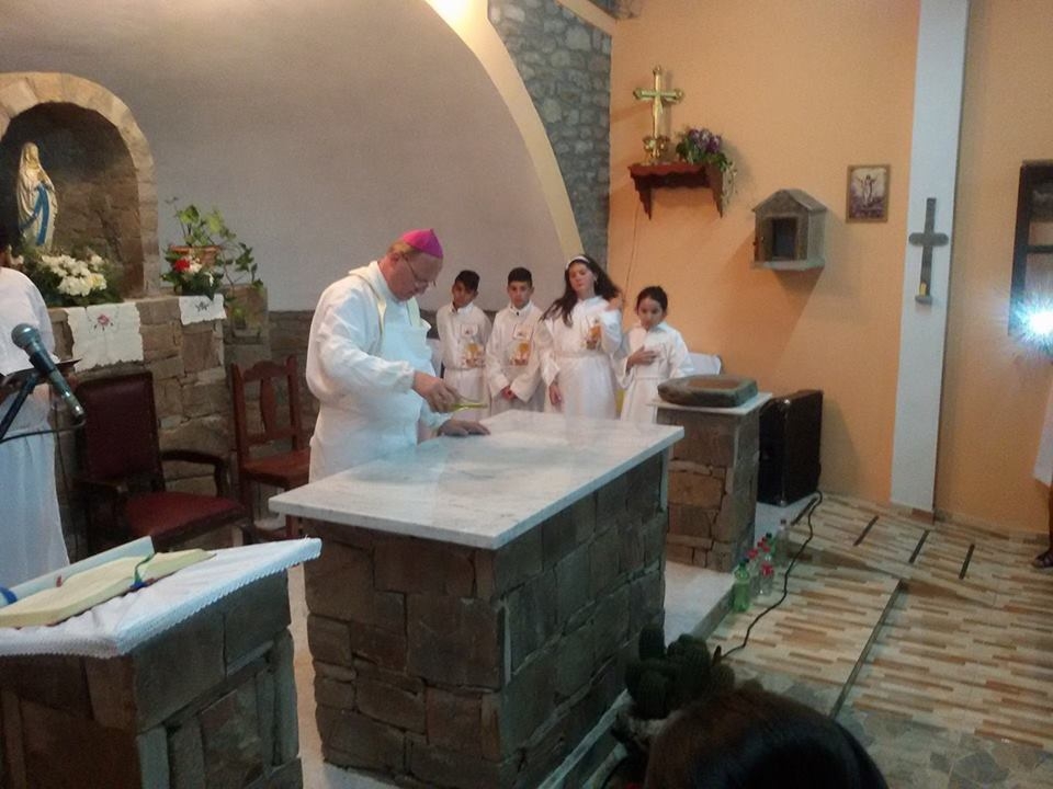 Durante la celebración eucarística, cinco niños del lugar recibieron su Primera Comunión.