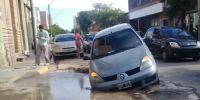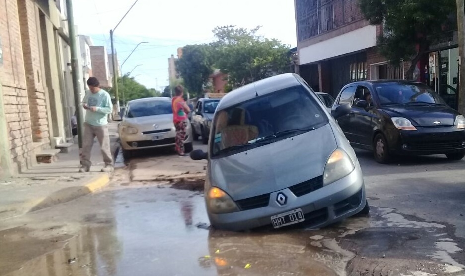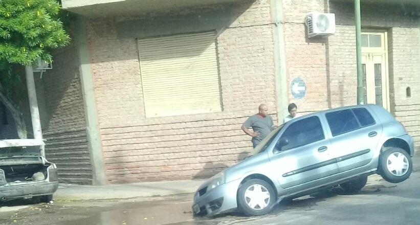 En este sentido las pérdidas de agua por roturas de caños de la red y la irresponsabilidad de los vecinos que dejan abiertas las canillas, ocasionan constantes erosiones el pavimento urbano. En este caso, el rodado debió ser remolcado de un pozo con agua en pleno centro de la ciudad.