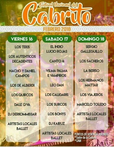 Los siguientes Artistas locales se presentarán en el Escenario"Carlos Bazán" del Festival del Cabrito 2018.