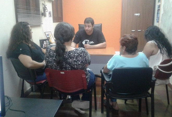 El director de Patrimonio Cultural, German Scolamieri, recibió en su despacho a la bailarina Rita Soria, la ceramista Belén Ahumada, el acróbata Pablo Nieto, la artesana Silvia Martinotti y la telera Analía Pogonza, y les ofreció los espacios con que cuenta el organismo cultural, como la Casa de la Cultura y el Predio Ferial, tanto para el dictado de talleres como para realizar y guardar sus producciones.