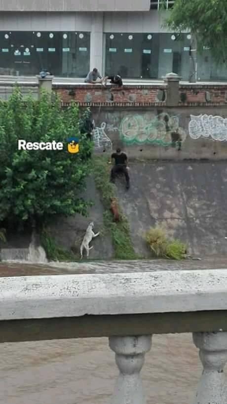 La foto fue publicada en Facebook, donde la usuaria destaca el gesto de valentía de los bomberos para rescatar a dos perros que se encontraban en el arroyo Fariñango.