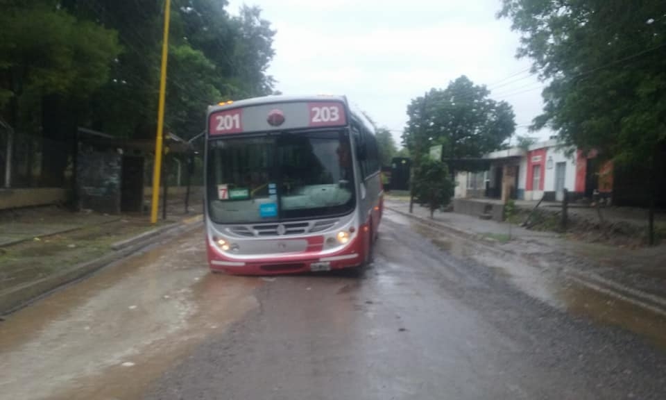 Un colectivo, línea 203, quedó incrustado en una de las calles de San Antonio, en el departamento Fray Mamerto Esquiú.