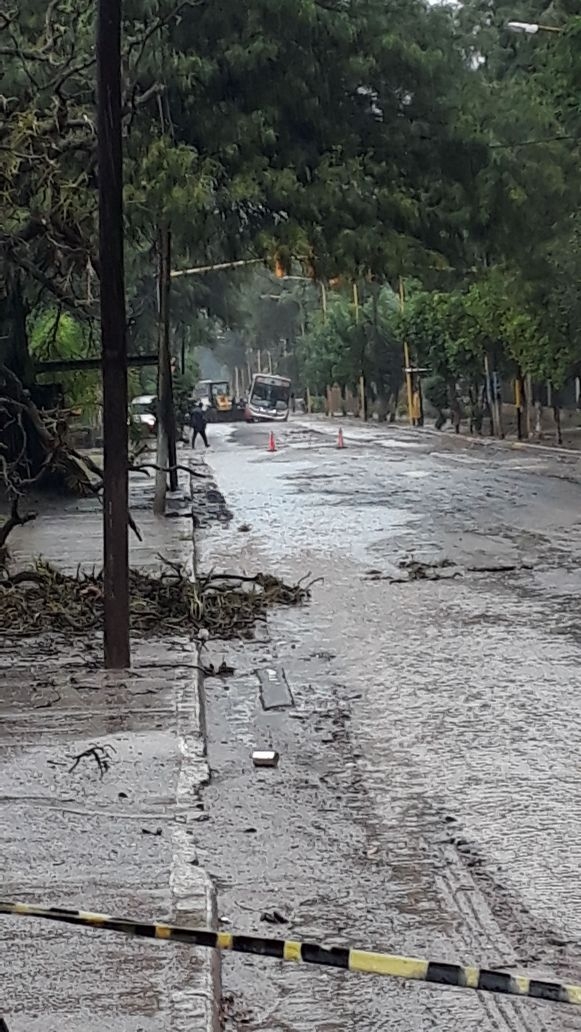 La imagen muestra en el estado en que se encuentra la ruta 41 luego de la furiosa lluvia que cayó desde la madrugada de este sábado en todo el Valle Central.