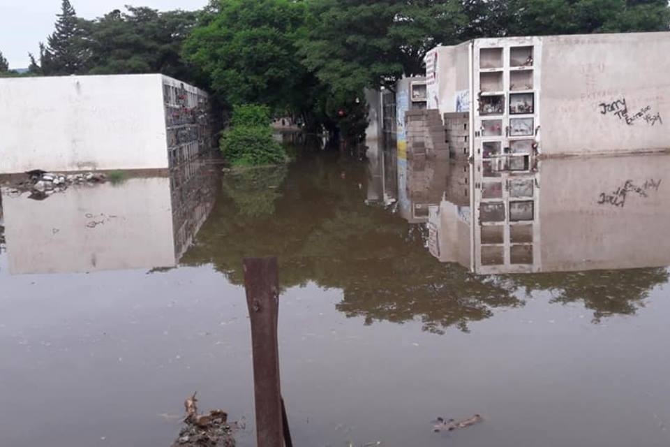En las redes sociales, publicaron las fotos de cómo quedó el cementerio municipal luego que se desatara un importante diluvio en el Valle Central.