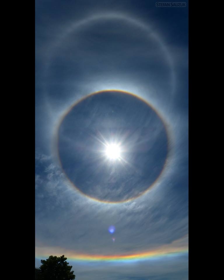 En el cielo se pudo ver aquel día, tres halos, un inmenso halo parcial a 46 grados (ángulo de visión entre el sol, el halo y el ojo), uno "común" a 23 grados, y como si eso fuera poco, un increíble halo blanco superpuesto con el anterior.