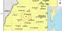Epicentro: 288 Km. al NO de La Rioja, 325 Km. al O de San F. Del Valle De Catamarca, 56 Km. al SO de La Tambería. -27.543 (lat) -68.880 (long)