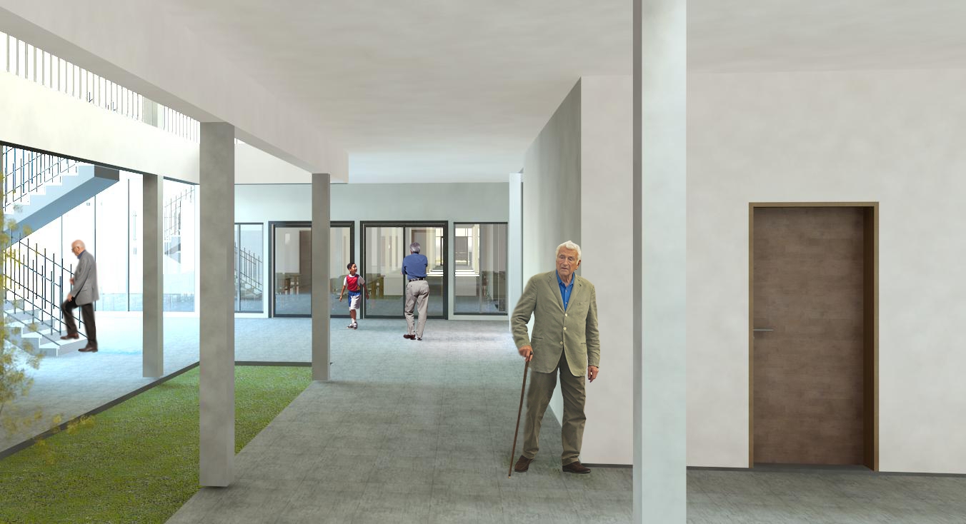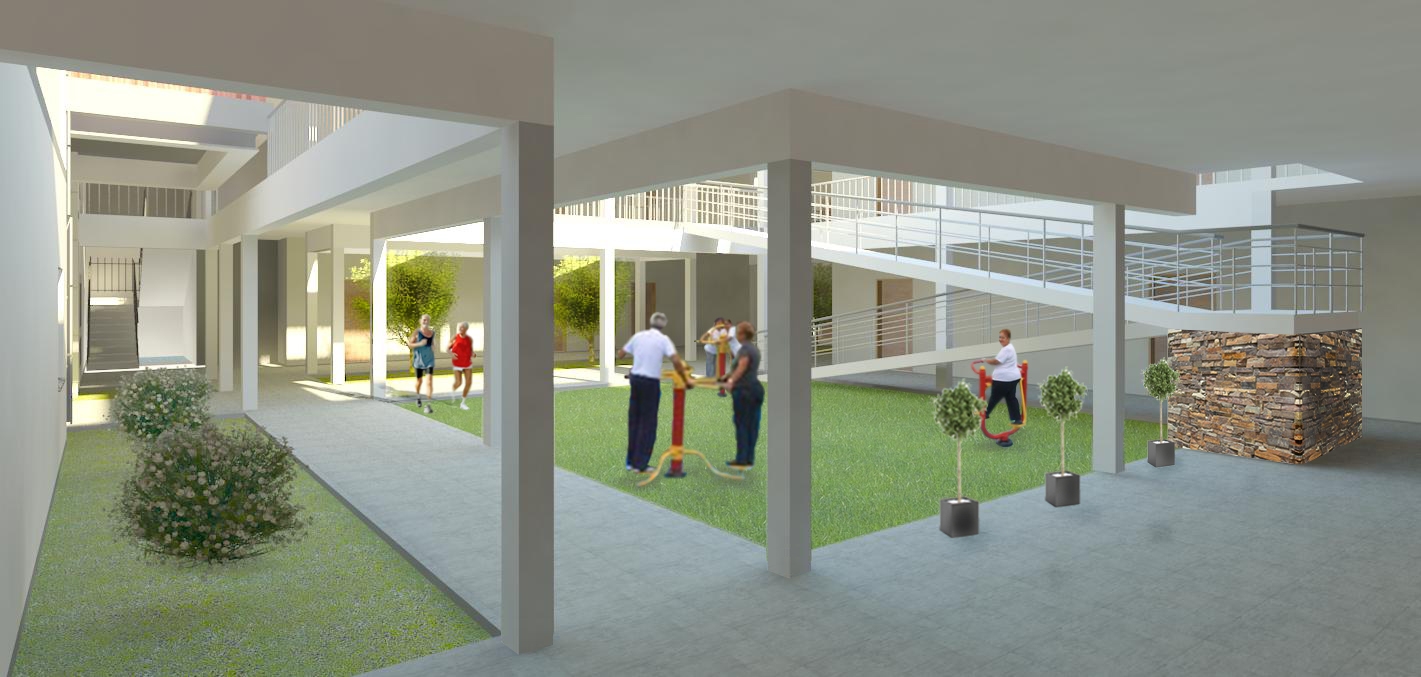 Cuenta con estacionamiento propio; acceso para ambulancias por sector salud; hall central con administración con sector de 2 enfermerías y baños para discapacitados; un patio central con escaleras, rampas y ascensor; zonas de habitaciones para 2 personas con lugar para un tercero que asista a los mismos, cada una tendrá un pequeño patio dónde se podrá contar con vegetación y mascotas; en el área salud, habrá 5 consultorios, para atención médica ambulatoria, terapéutica, psicológica, masajes, podología, ozonoterapia, etc.; una sala de rehabilitación, para realizar diferentes actividades recreativas, terapia grupal, y una pileta cubierta climatizada; el comedor tendrá una capacidad para 90 personas y contará con cocina industrial, nutricionista, sanitarios, vestuarios y depósito; lavadero y planchado; y una galería con patio, para poder contar con una huerta orgánica, horno de barro y mesones, árboles frutales y animales de granja.