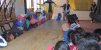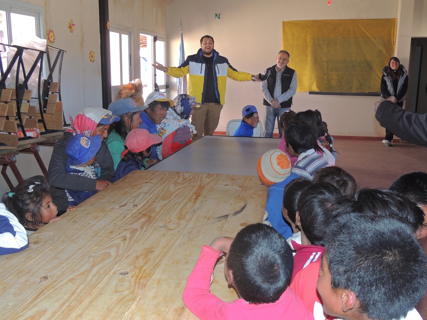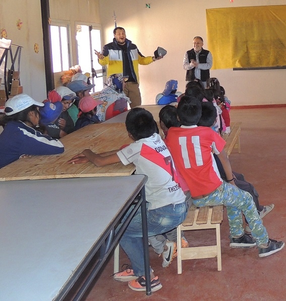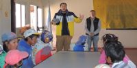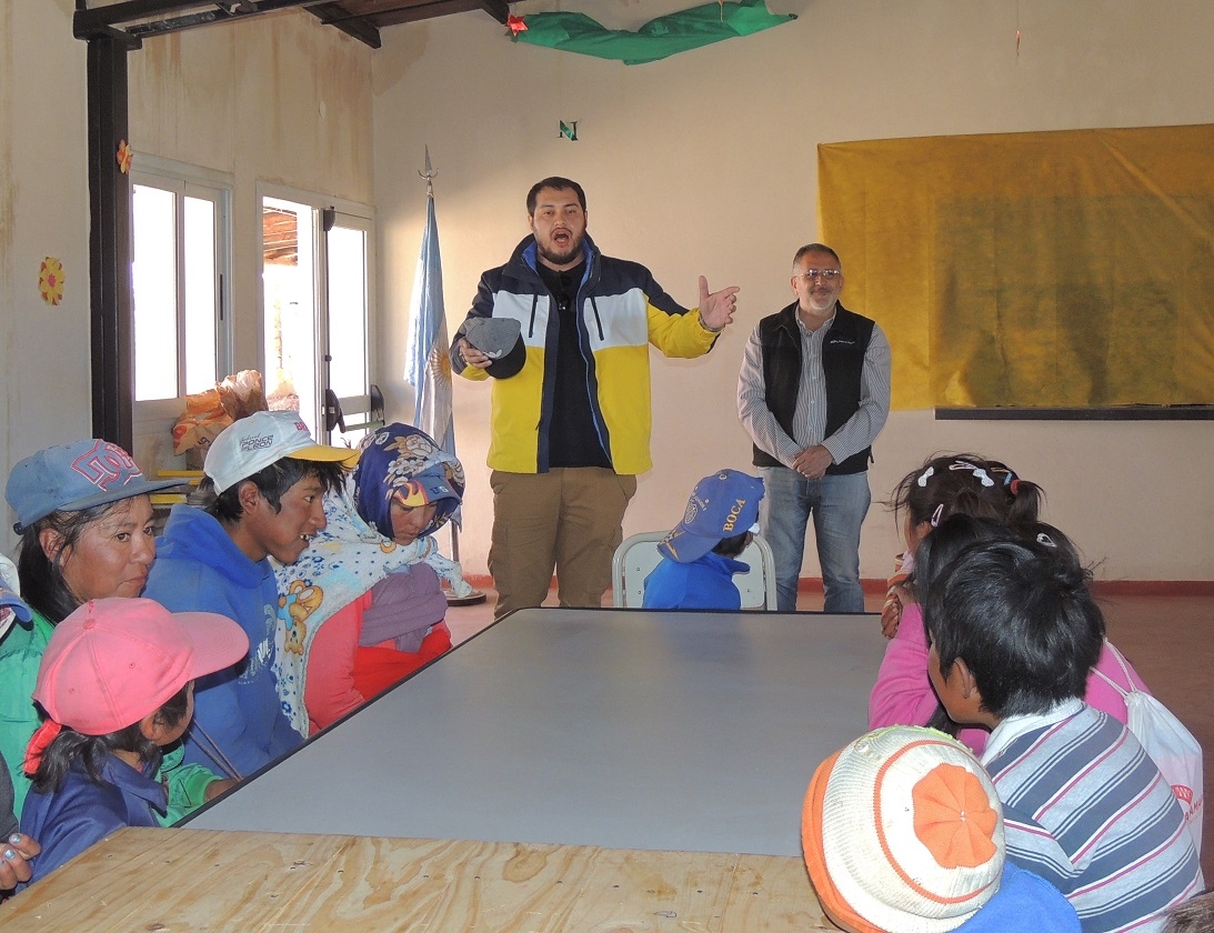 Estuvo acompañado del cantante lírico Nicolás Romero y funcionarios de la Dirección de Promoción Social; Juan Carranza y Rodolfo Zelaya. Allí, fue recibido por cacique Isidro Gervan; la directora de la Escuela 192, Marta Alicia Macias; docentes, padres y alumnos.