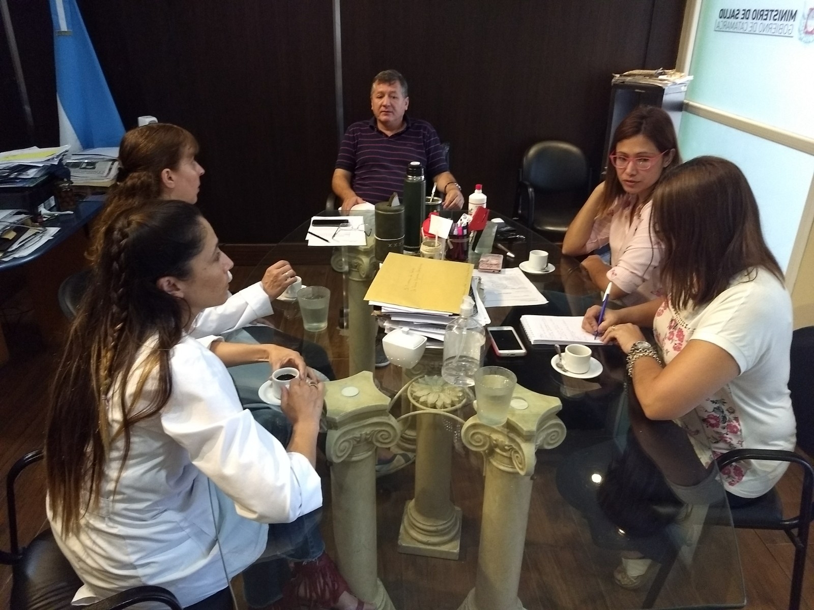 El ministro de Salud de la provincia, Dr. Ramón Figueroa Castellanos, se reunió con la directora de Cáncer, Dra. Claudia Hernández, la coordinadora provincial del Programa de Prevención y Detección Temprana del Cáncer Colorrectal, Dra. Fernanda Lagoria y la coordinadora de Cuidados Paliativos del Hospital San Juan Bautista, Dra. Mariela Nieva, en el marco de las actividades por el Día Mundial de la Lucha contra el Cáncer, que se conmemora el próximo 6 de febrero.