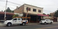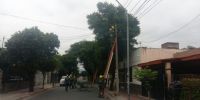 Las imágenes muestran a los trabajadores colocando línea preensamblada con 3 conductores de 95 mm2 para las fases más 1 por 50 mm2 para el neutro entre Plaza Virgen del Valle y Av. Belgrano al 550 y por calle Maipú entre Av. Belgrano y Perú.