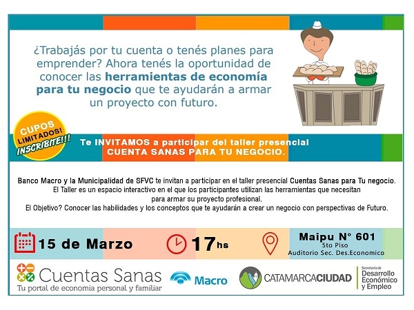 Desde la secretaría de Desarrollo Económico aclararon que los cupos para los dos cursos son limitados y que las inscripciones se reciben en forma personal en el quinto piso del edificio citado, en calle Maipú 601 esquina República.