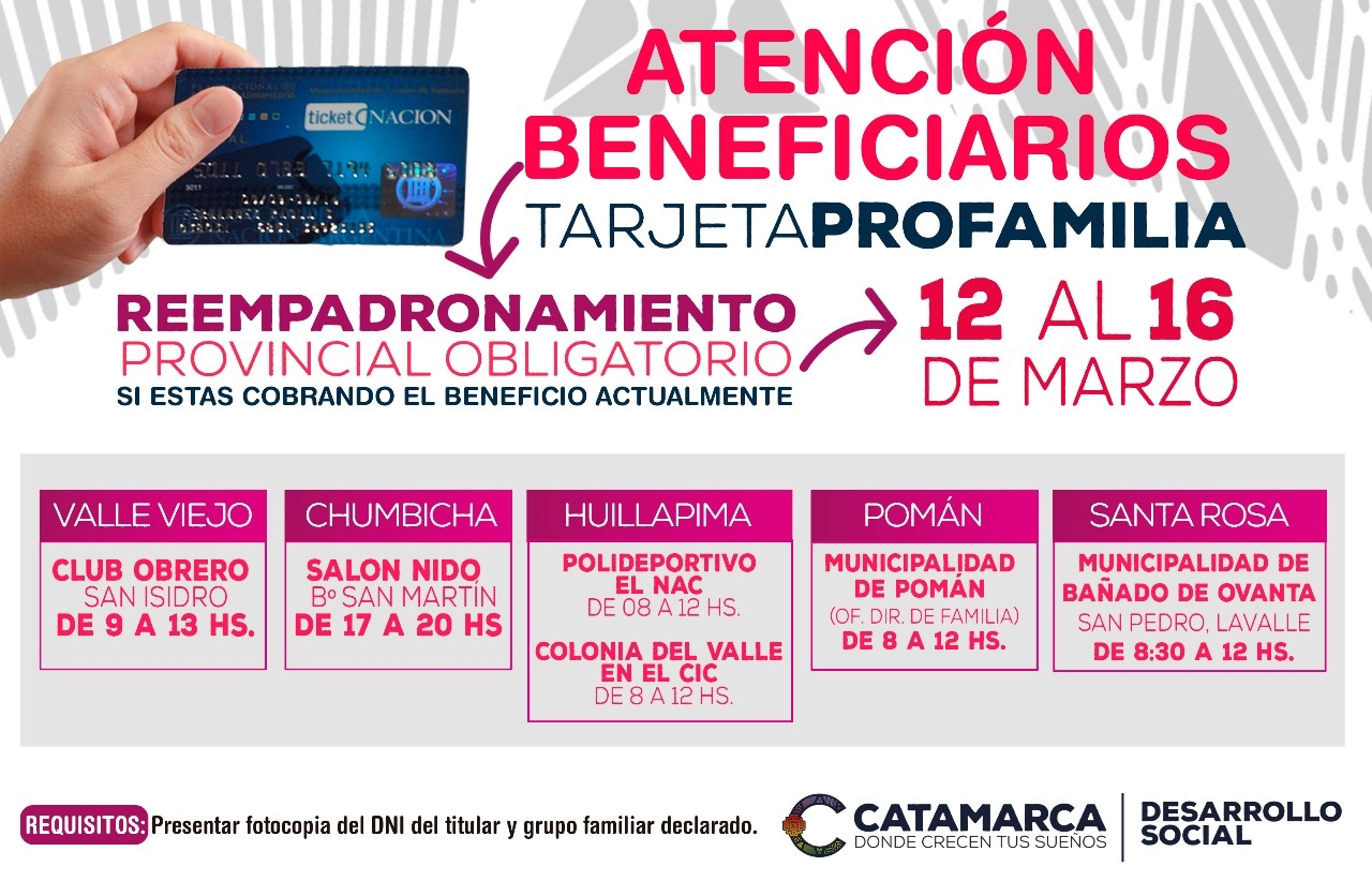 Pomán: Municipalidad de Pomán (Oficina de la Dirección de Familia) de 8 a 12 horas.