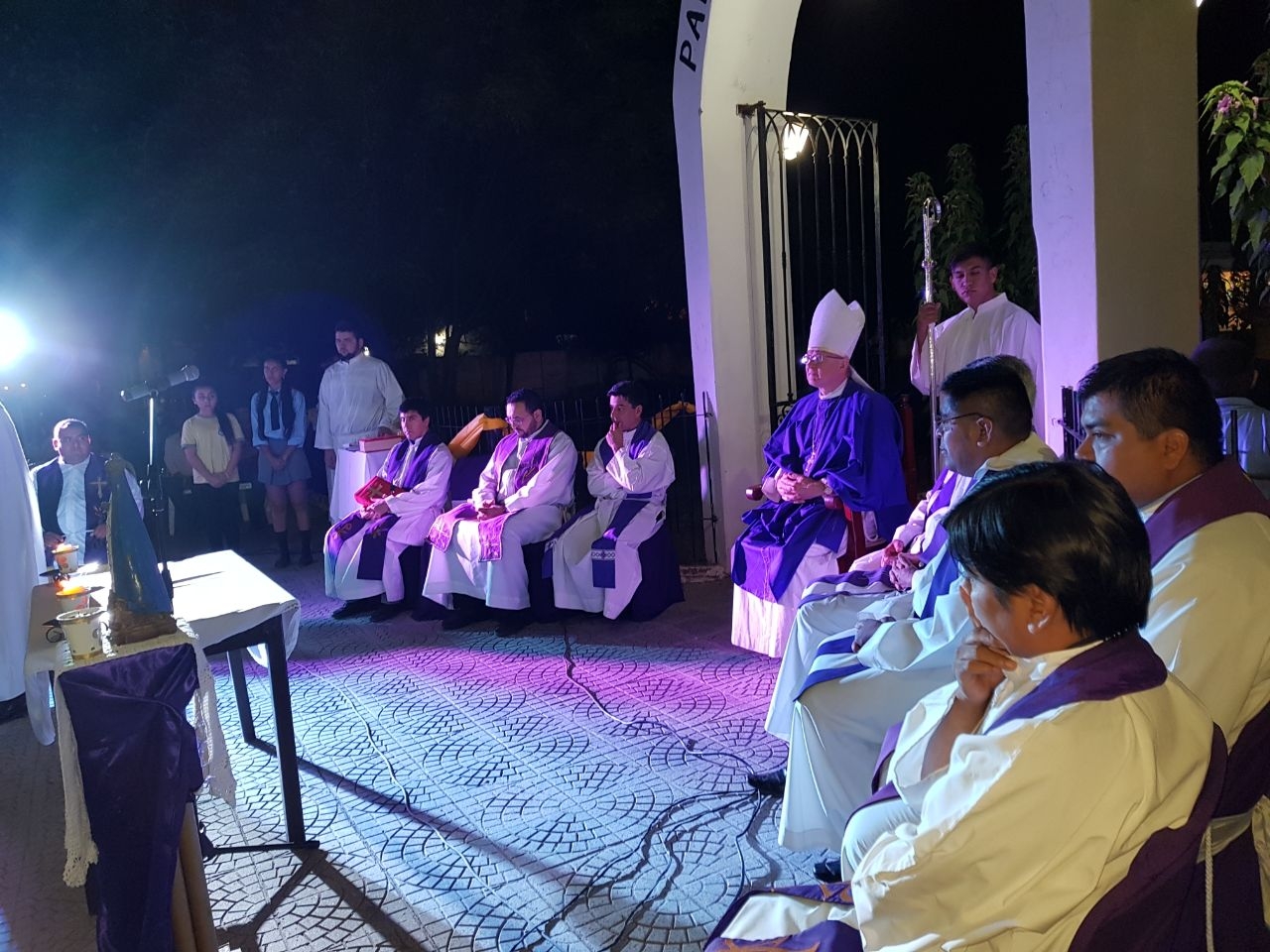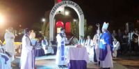 La ceremonia se llevó a cabo en el ingreso al templo, donde se dieron cita fieles de las comunidades que componen la jurisdicción parroquial, miembros de instituciones eclesiales, autoridades civiles, encabezadas por el Intendente de Recreo, Prof. Roberto Herrera, el intendente de Los Altos, Dn. Rafael Olveira, una delegación del Colegio Parroquial Inmaculada Concepción y las Hermanas del Verbo Divino, quienes acompañan la labor pastoral en esa zona.