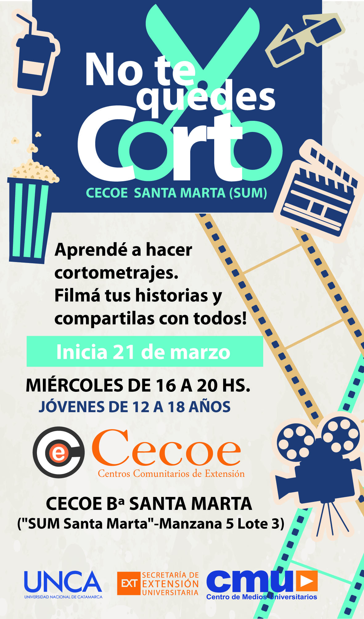 El taller inicia el próximo miércoles 21 y están abiertas las inscripciones en el CECOE del barrio Santa Marta para todos los interesados.