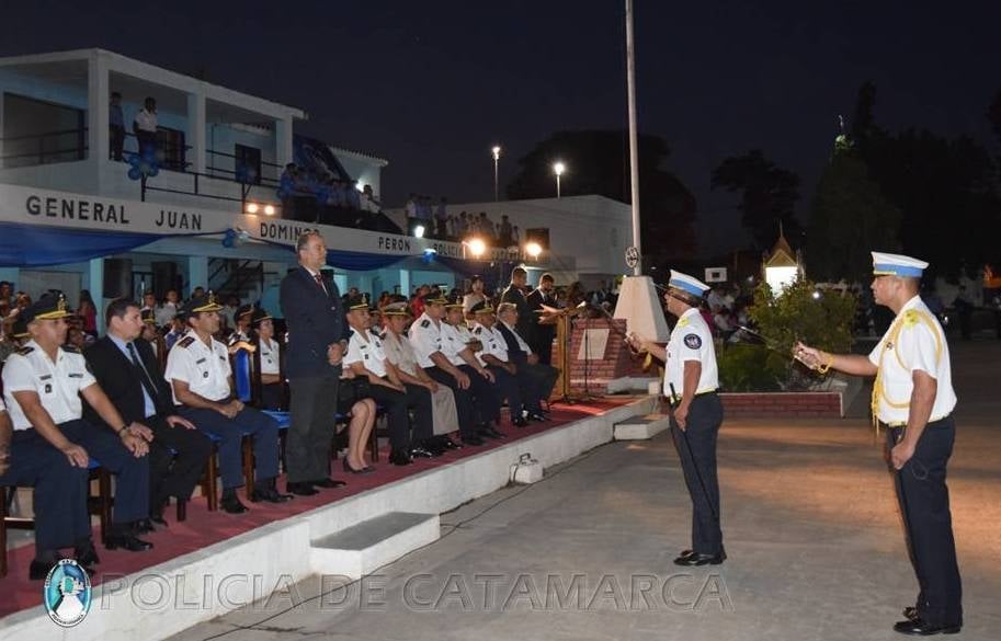 El acto fue presidido por el secretario de Seguridad, Marcos Denett, acompañado por el jefe de Policía de la provincia, Crio. Gral. Lic. Orlando Antonio Quevedo, el Director de Planes de Seguridad, Crio. Gral. (RE) Manuel Américo Aibar, la diputada por Capayán, Analía Brizuela, el Inspector General de Policía, Crio. Gral. Carlos Carrizo, representantes del Ejército Argentino, Gendarmería Nacional, Policía Federal Argentina y del Servicio Penitenciario Provincial, integrantes de la Plana Mayor Policial, Oficiales Superiores, Jefes, Subalternos, Suboficiales, Agentes, Cadetes, invitados especiales y público en general.