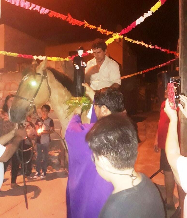El párroco del sector, Pbro. Sergio Gabriel Chumbita, presidió la Santa Misa y a su finalización se llevó a cabo la peregrinación hasta la gruta donde fue entronizado el Santo Cura Gaucho, ubicada en la Peatonal 13 del barrio Libertador II.