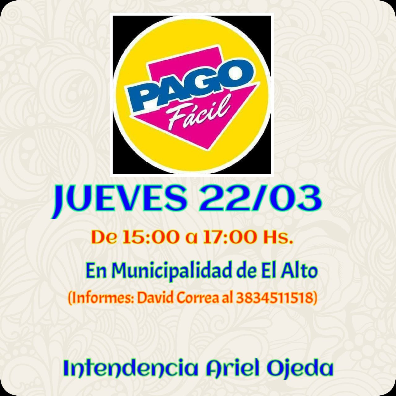 Atenderá en las oficinas de la Municipalidad de El Alto, de 14.30 a 17 horas, donde se recepcionarán todas la boletas de pago por este servicio.
