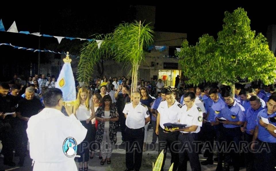 El Capellán Policial, Oficial Inspector Pbro. Esteban Chaile, presidió la ceremonia religiosa a la que asistió el Inspector General de Policía, Crio. Gral. Carlos Alberto Carrizo, junto al Segundo Jefe de la Unidad Regional Nº 2, Crio. Mayor Rolando Javier Contreras, la Sra. Jueza de Control de Garantías de la Sexta Circunscripción Judicial, Dra. Corina Pérez, Concejales Marcela Contreras, Melisa Herrera, Luis Polti, Alberto Oyola y Víctor Romero, la Sra. Jefa de Gabinete de la Municipalidad de Recreo, Dña. Liliana Espinosa, la Secretaria Privada del Municipio, Dña. Alejandra Gallo, invitados especiales y la gran familia policial.