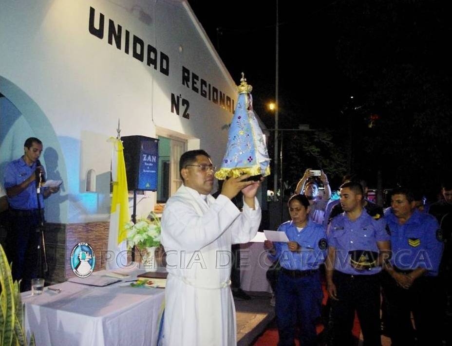 Durante la Celebración, efectivos de distintas dependencias que conforman la Unidad Regional Nº 2, guiados por el Capellán Policial, colocaron el manto y la corona a la Sagrada Imagen de nuestra Madre del Valle, que luego fue entronizada en la Gruta construida en su totalidad por personal policial para que sea venerada por quienes prestan servicio en el lugar, como así también por todas aquellas personas que concurren a diario por algún requerimiento.
