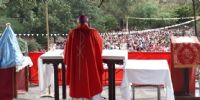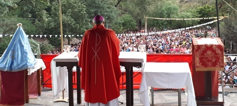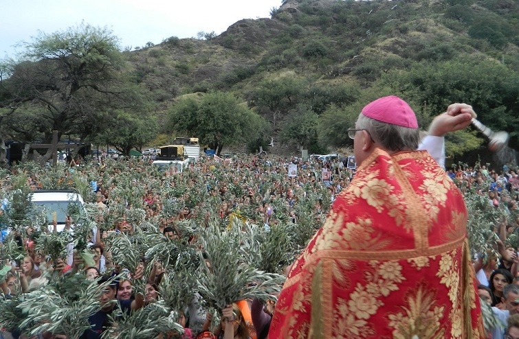 Al arribar al sector de ingreso a la Gruta, se llevó a cabo la ceremonia de bendición de los ramos de olivo por parte del Señor Obispo. Tras lo cual se desplazaron en procesión unos metros más para participar de la Santa Misa, cuando ya la luz del día comenzaba a desaparecer entre las montañas.