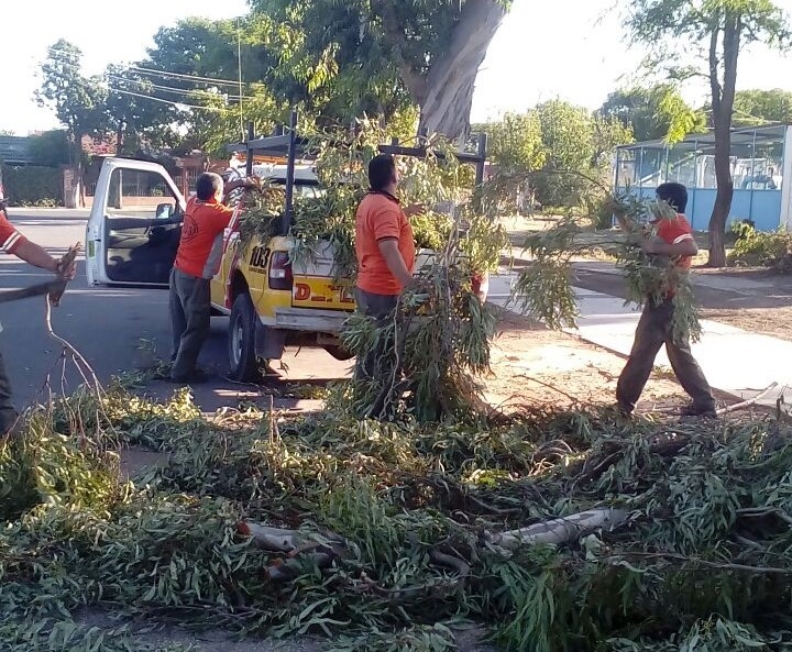 “Había muchos gajos tirados sobre las veredas y calles circundantes, y otras ramas a punto de caerse, por lo que procedimos a retirarlas y limpiar las sendas peatonales que se encontraban bastantes obstruidas y generaban un verdadero peligro para las personas que concurren diariamente al edificio”, informó el director de Defensa Civil, Martín Castelli.